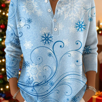 Коледният пуловер Elena е изработен от мек памучен микс и е украсен с елегантен принт със снежинки и извити зимни линии. Закопчаването с копчета на деколтето придава класическо излъчване, което прекрасно се съчетава със спокойния, празничен дизайн.