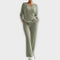 С рибен дизайн, дълга тениска с V-образно деколте и широки панталони, този комплект е перфектен за релаксиращи моменти у дома или за небрежен и стилен вид по време на твоите излети.
