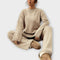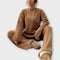 Идеален за по-хладни дни, този комплект от плетиво е перфектният избор за съчетаване на абсолютен комфорт и модерен стил. С тениска с широк силует и панталони с прав силует, предлага небрежен и изискан вид. Комбинирайте с ботуши, маратонки или меки чехли за удобен и елегантен вид в същото време.