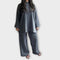 Този огромен сет е перфектен за тези, които ценят комфорта без компромиси в модерен и изискан вид. С широка блуза с дълги ръкави и прави панталони, осигурява свобода на движение, лекота и много стил. Идеален за дни на почивка, пътувания или за тези, които обичат удобния вид с присъствие.