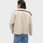 Франсиска е твоята незаменима спътница за преходния сезон. Със своята модерна силуета, леко съкратена, и забележителен ревер, съчетава класическа елегантност с съвременен дизайн. Двойни копчета и свободен кройка я правят универсална – независимо дали отиваш в офиса или се отпускаш на разходка из града.