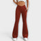 С разширен крачол и "V" талия, тези панталони са проектирани да подчертават извивките и да удължават силуета с елегантност. Удобният материал и прилепналият крой на бедрата осигуряват модерен и универсален вид — перфектни за неформални, спортни или дори модно смели комбинации.
