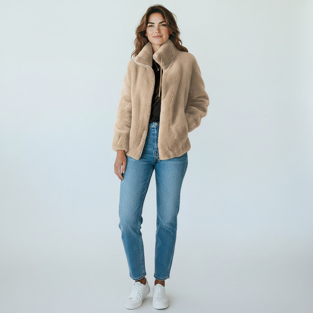 Яке Вера е създадено да ви прегърне с изключителна мекота и уют през студените дни. Неговата пухкава материя и висока яка осигуряват максимална топлина, докато модерният дизайн с цип придава лекота и стил на всяка ваша визия. Това е идеалният избор за ежедневни дейности, разходки или просто за моментите, когато търсите усещане за защитеност и комфорт.