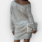 Рокля, която привлича погледите — впечатляващите пайети в контраст създават зашеметяващ ефект с всяка стъпка. Идеална за блестящи излизания и специални моменти.