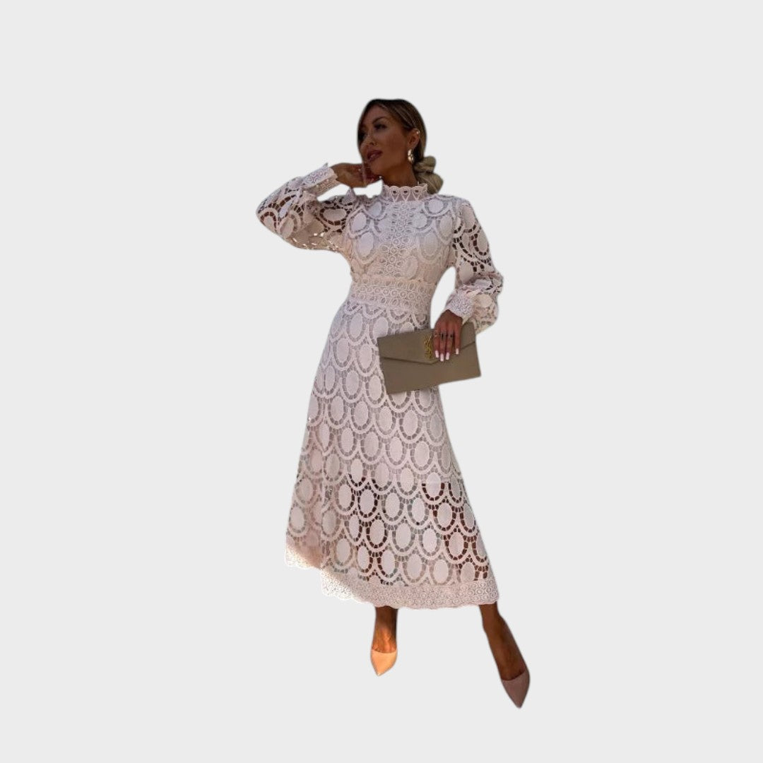 Даница - Чипкана рокля с обемни ръкави и висок яка