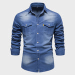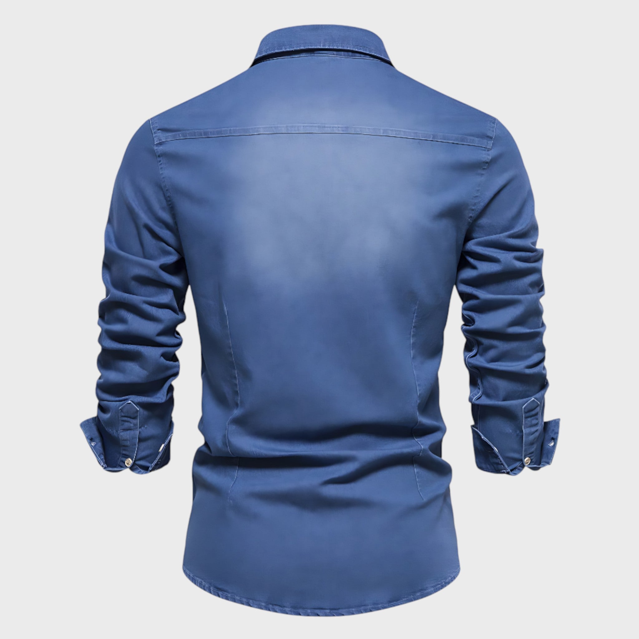 Представете си усещането за перфектно прилягащи дънки – тази неповторима комбинация от удобство и стил. Сега пренесете това усещане във вашата нова любима риза. "Джим" е точно това: стилна, многофункционална и невероятно удобна. Изработена от мек памучен деним, тази риза съчетава класическия дух с модерен, втален (slim fit) силует. Фините детайли ѝ придават изтънчен вид, докато издръжливата материя гарантира, че ще бъде ваш верен спътник сезон след сезон, перфектна за всеки повод.