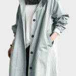 Този тренчкот съчетава стил и удобство, създавайки модерен и елегантен външен вид. С дълга линия и свободен силует, той е идеален за носене върху различни облекла, осигурявайки комфорт и защита през прохладните дни.