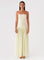 Елегантна рокля без презрамки с минималистичен силует, който подчертава фигурата с дискретна изтънченост. Асиметричният шев в талията придава движение и модерен характер, докато дългата пола осигурява леко усещане. Идеална за вечерни излизания и специални поводи с стил.