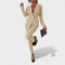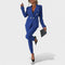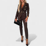 Софистициран комплект, създаден за жени, които искат да изглеждат професионално и уверено. Двуредното сако с декоративни копчета оформя талията и придава перфектна структура, докато тесните панталони с цигарен крой, дължина до глезена, визуално удължават силуета. Удобната тъкан с леко разтягане следва движенията и запазва безупречен вид от сутрин до вечер. Джобовете с клапа и чистият крой го правят идеален за офис, срещи и тържествени поводи — носете го като комплект или отделно.