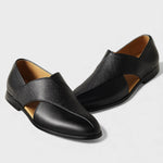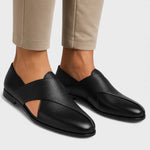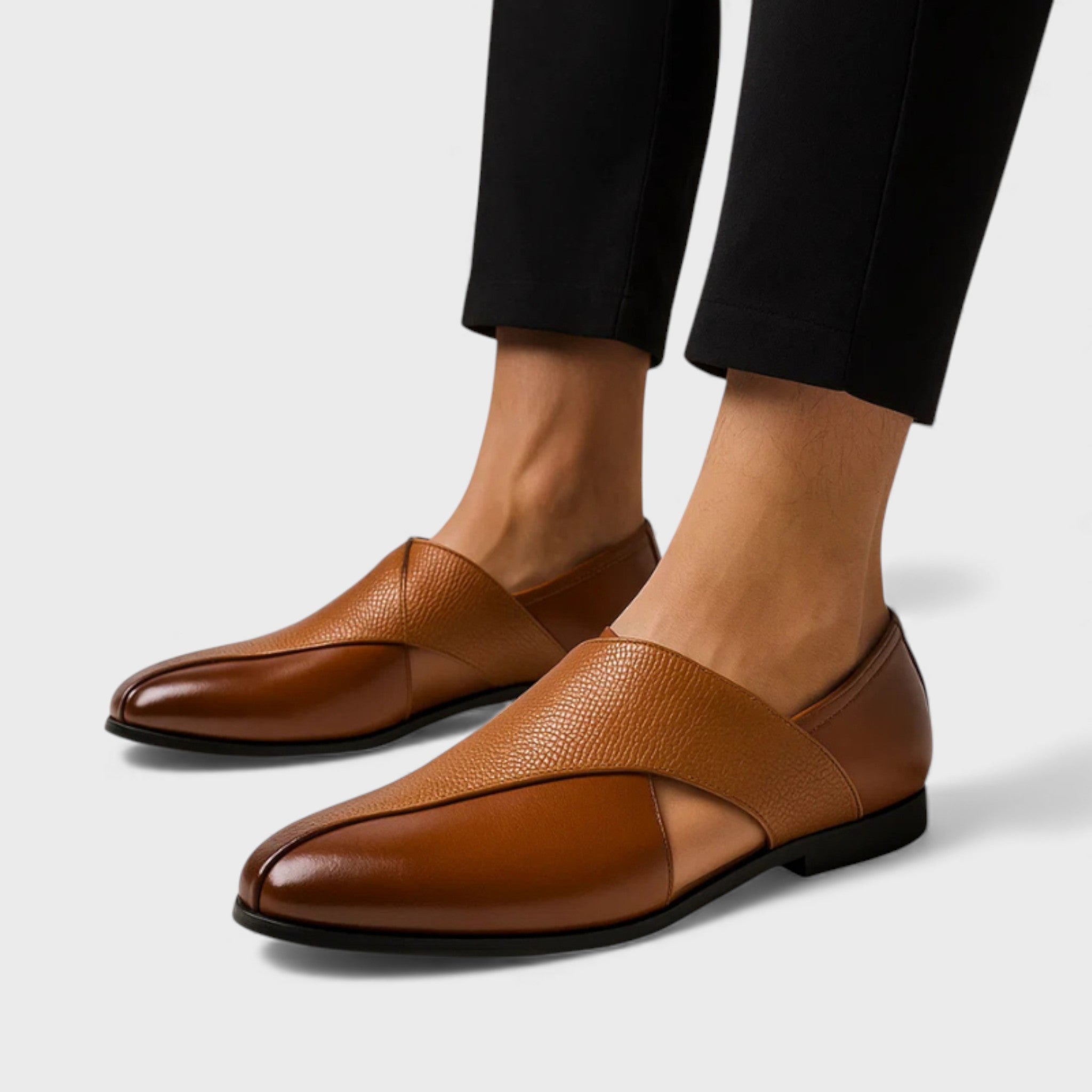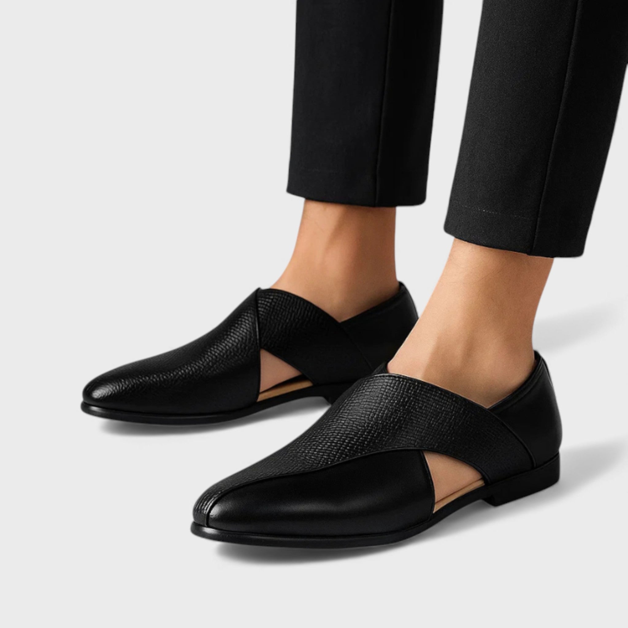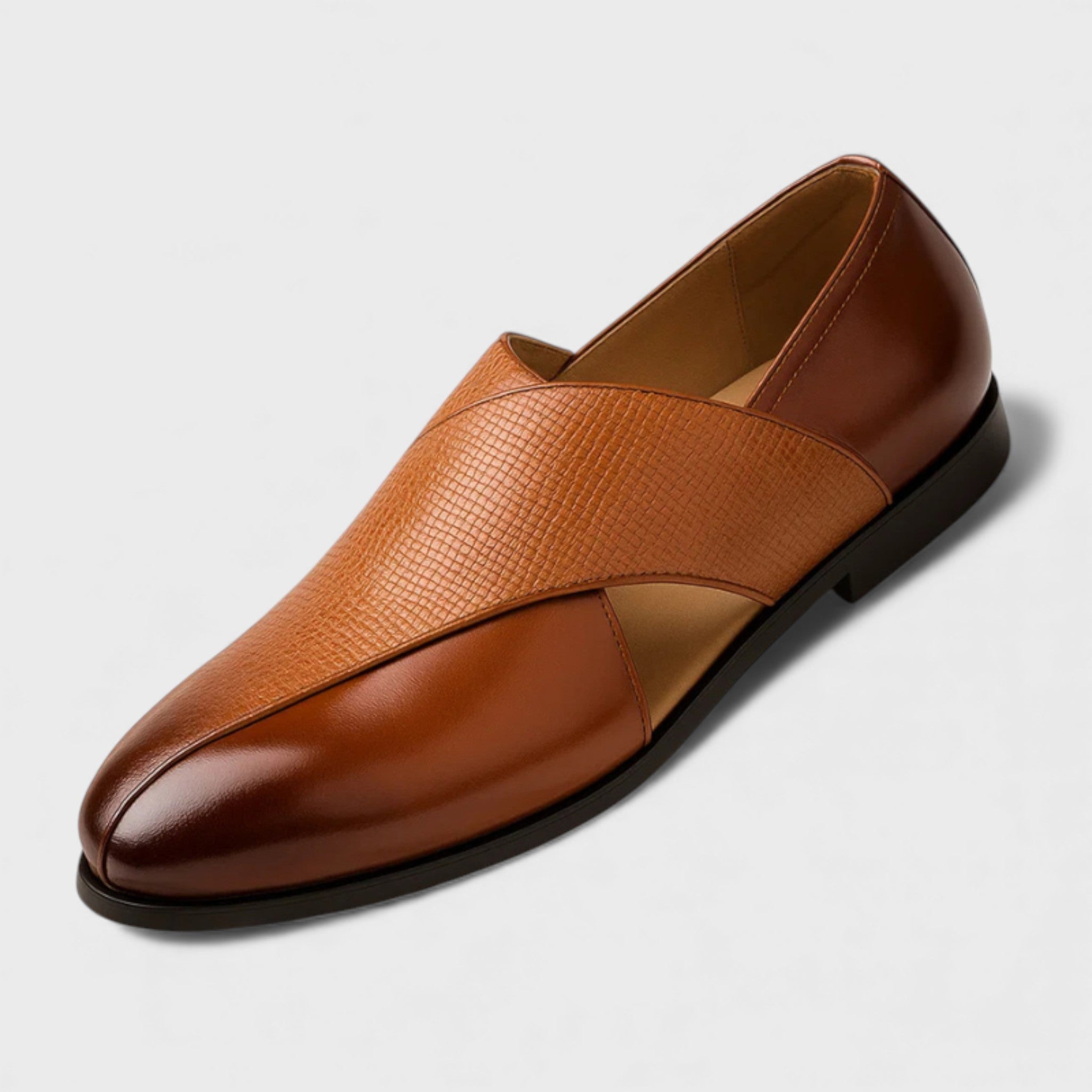 Изработени от първокласна естествена кожа, тези мокасини се отличават с елегантен и минималистичен силует. Уникалният акцент от текстурирани кръстосани каишки придава изисканост, а стабилната подметка гарантира, че ще се чувствате удобно във всяка стъпка от сутрин до вечер.