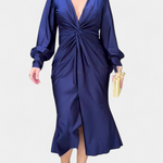 Лена Дълга Рокля с Дълги Ръкави и V-образно Деколте