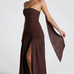 Тази рокля без презрамки излъчва вечна елегантност и женственост. Идеален избор за вечерни излизания и официални поводи.