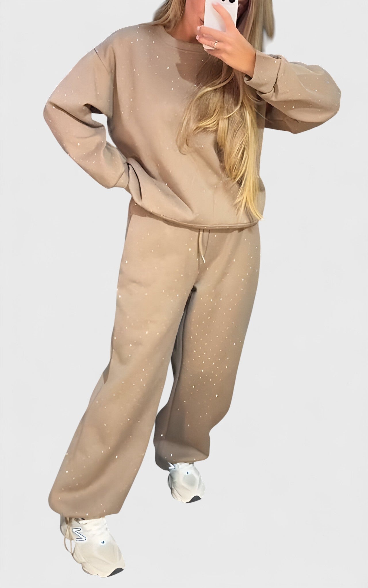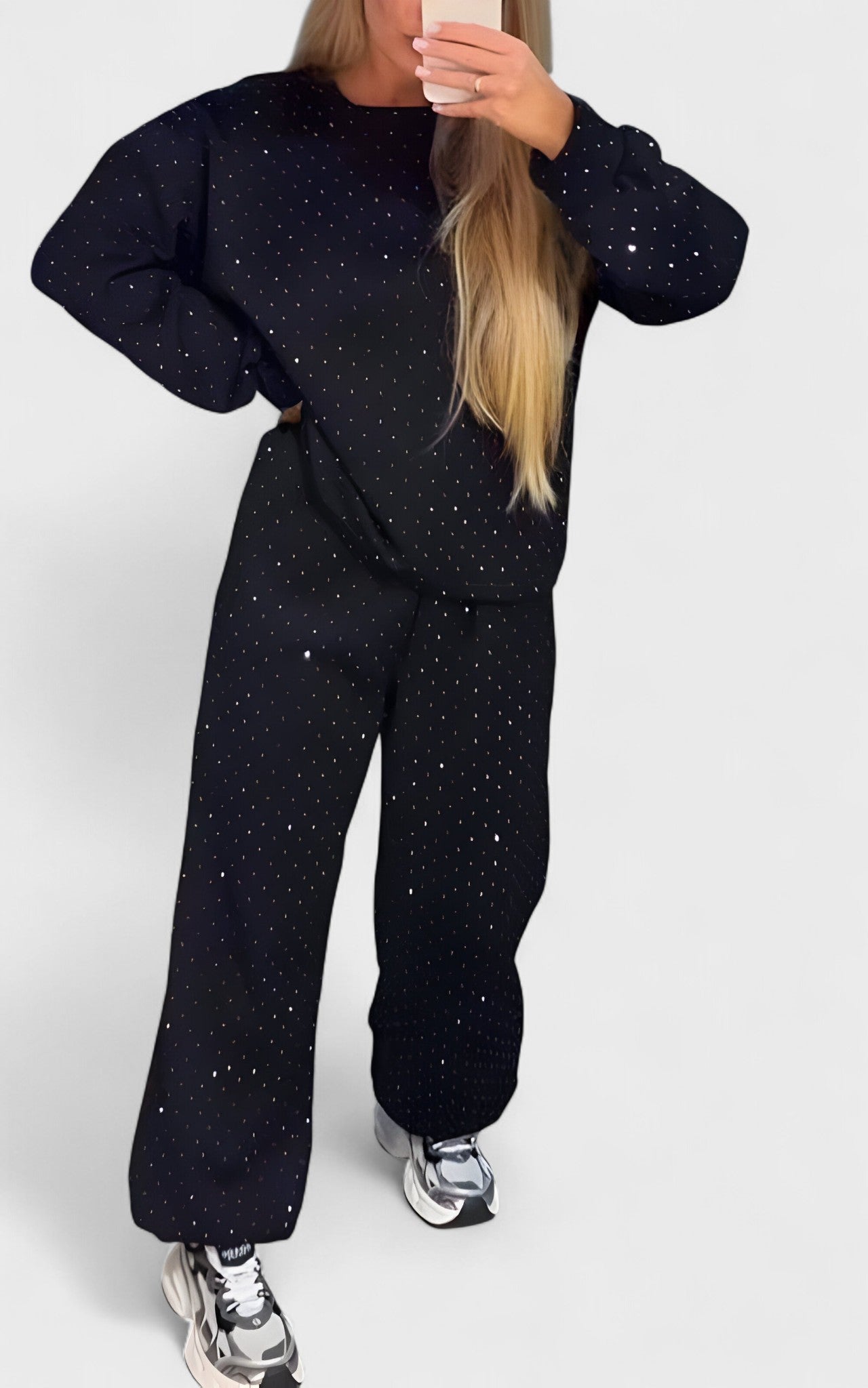 Готова ли си да се откроиш навсякъде? Мария™ | Диамантен комплект е създаден за жената, която обича комфорта, но не прави компромис със стила. Съвременен, изискан и лесен за комбиниране, този комплект ще ти помогне да изглеждаш прекрасно във всяка ситуация – от спокойните моменти у дома до динамичните дни в града. Почувствай се специална всеки път, когато го облечеш!