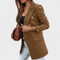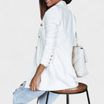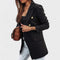 Елегантно структуриран сако с класически ревери и двуредно закопчаване повдига всеки аутфит — от дънки до бизнес вид. Удълженият, “longline” крой визуално удължава фигурата, докато дискретно усилените рамене и джобове с капак осигуряват изискана структура и практичност. Удобната, еластична тъкан красиво пада и запазва подреден вид през целия ден.