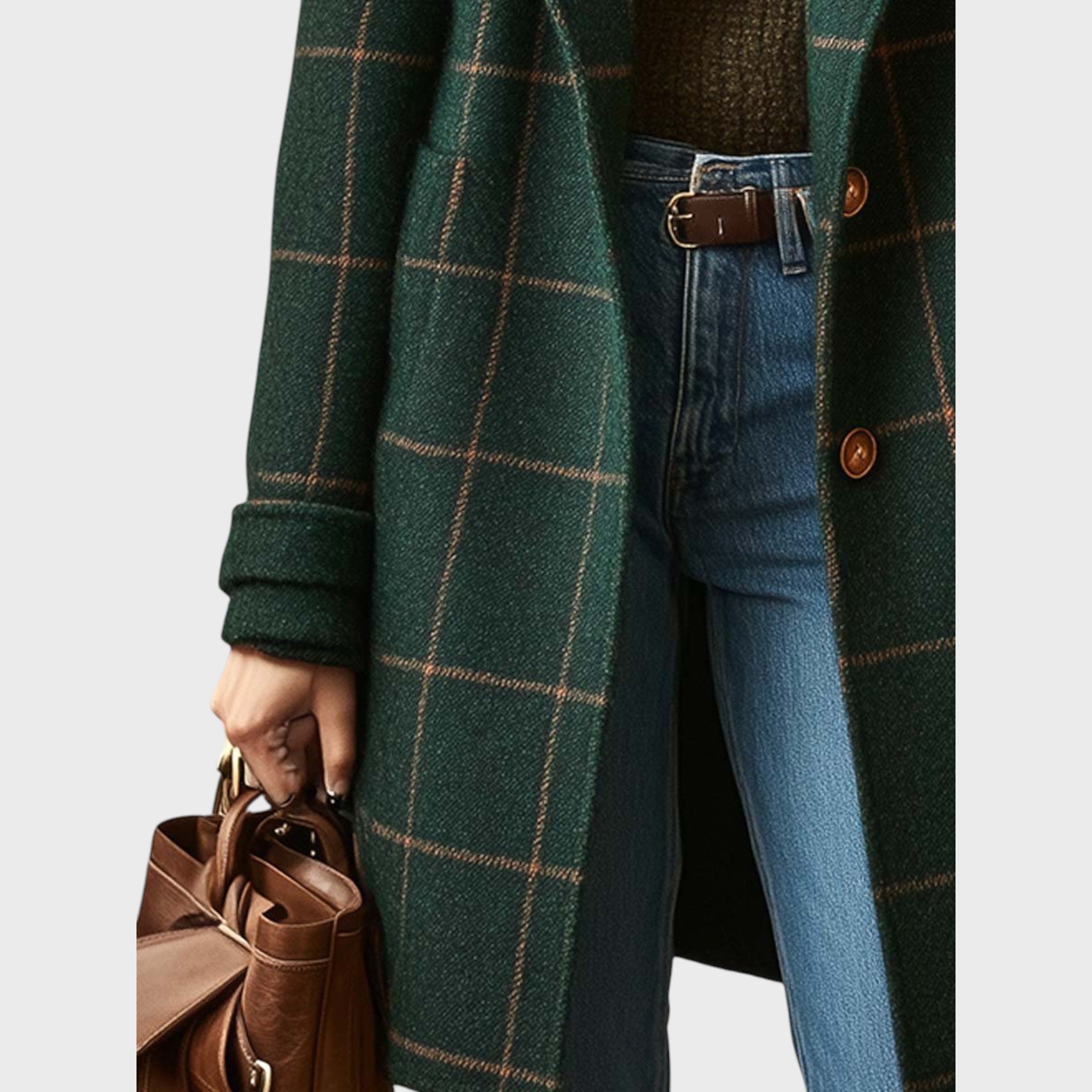 • Изискан кариран дизайн Вечен десен, който никога не излиза от мода. Структурираните ревери и елегантната кройка създават ласкав силует, който изглежда луксозно.
