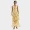 Тази прекрасна дълга рокля излъчва романтика и женственост. С дълбоко V-образно деколте и многослойни волани, тя създава грациозен и атрактивен вид, който спира дъха. Лек, ефирен материал осигурява свобода на движението, правейки я идеална за тържествени поводи, коктейли или летни партита.