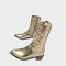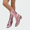 Женски **каубойки в металик розов** цвят, които привличат погледите със своя уникален характер. Те имат **богат бродиран мотив** и страничен цип за лесно обуване, докато ниският дървен ток осигурява комфорт и стил при всяка ваша стъпка. Идеални са за смели street-style комбинации и модни изяви, които се открояват.