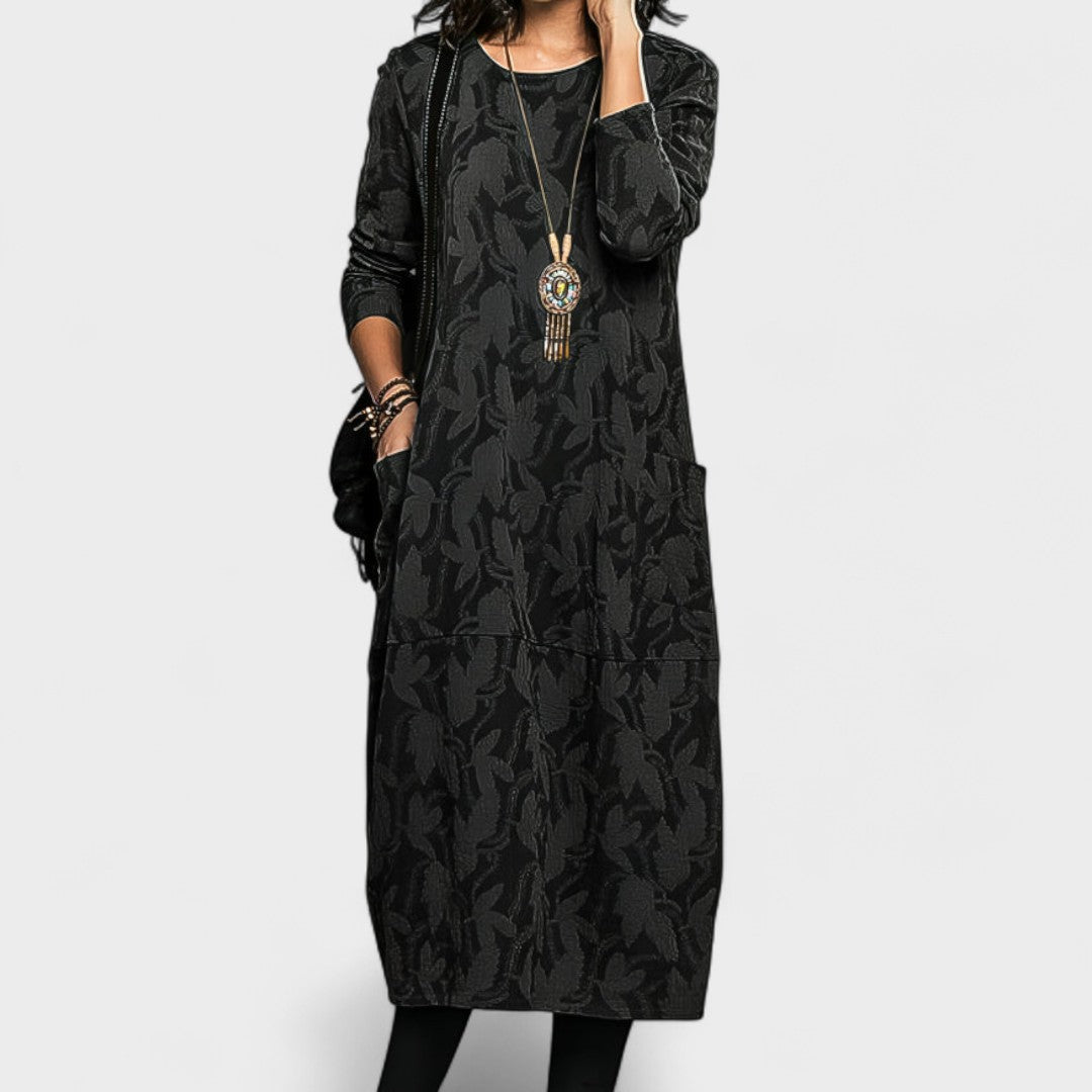 Тази есенна рокля е перфектен избор за жени, които искат да съчетаят комфорт и елегантност в ежедневния си стил. Изработена е от мек и топъл материал, с дълги ръкави и практични джобове, предлагаща максимален комфорт през по-хладните дни. Свободният крой осигурява свобода на движение, а дискретният модел придава нотка на специалност. Идеална за разходки, работа или неформални срещи.