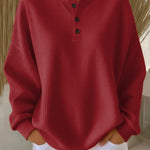 Останете топли дори когато температурите паднат до 5 градуса с нашия луксозен дамски пуловер – изработен от плътна, двупластова вафлена материя, която осигурява невероятно меко и топло усещане. Вътрешната страна е изключително уютна и наподобява полар, като осигурява максимален комфорт в хладните дни.