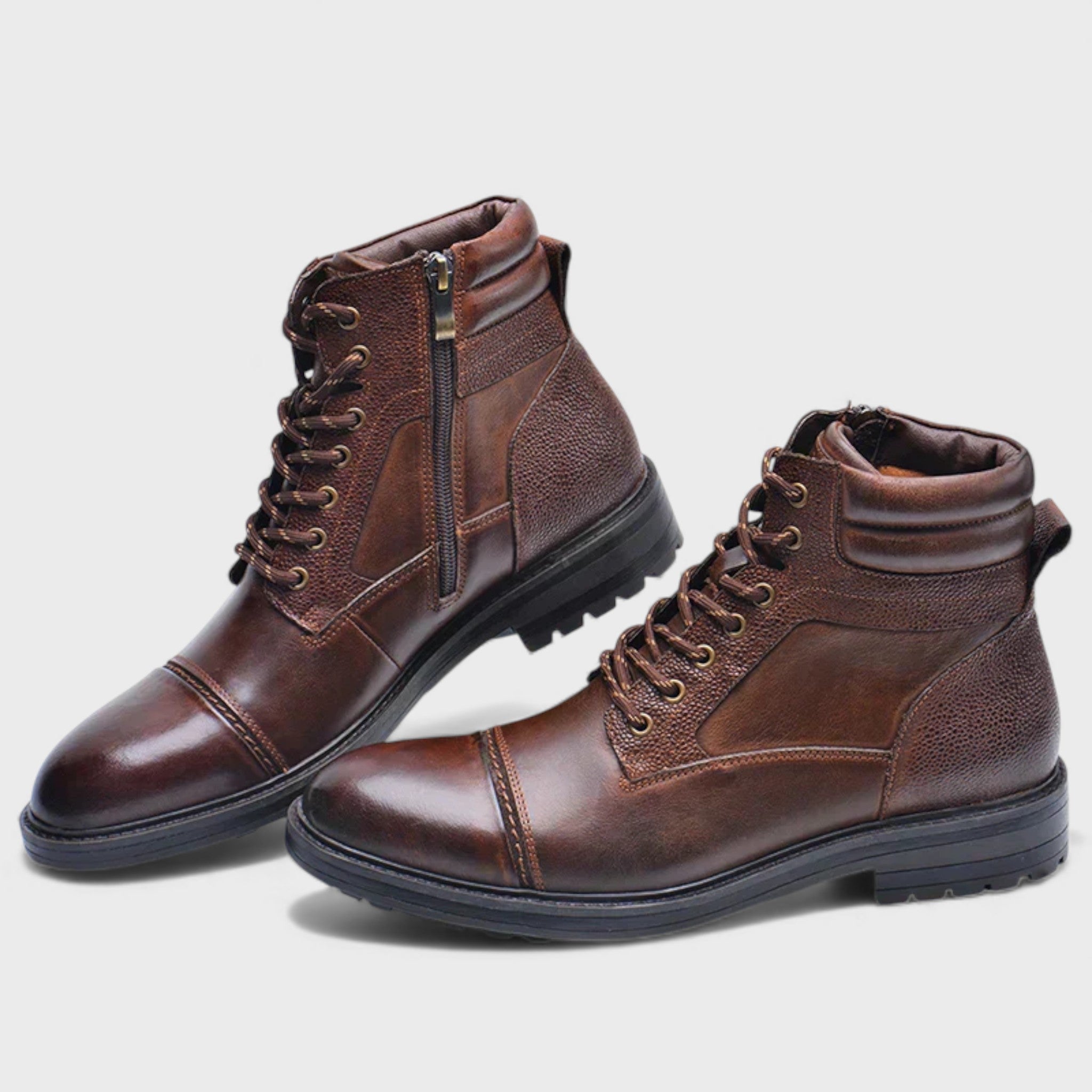 Открийте несравнимо качество и стил с премиум кожените ботуши Colton, създадени за модерния мъж, който търси едновременно издръжливост и елегантност. Изработени от естествена кожа, тези ботуши осигуряват топлина и устойчивост през есента и зимата, което ги прави идеален избор както за професионални, така и за ежедневни визии. Инвестирайте в обувки, които съчетават британска изтънченост с дълготраен комфорт.