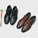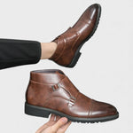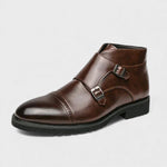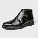Кожените ботуши Darell с две катарами са въплъщение на изтънчената елегантност. Изработени от висококачествена естествена кожа, те предлагат ненадминато ниво на стил и класа. Тези ботуши съчетават перфектно традиционното майсторство с модерния лукс, което ги прави идеален избор за изискания мъж.