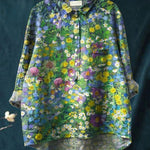 Grace | Garden Blooms Shirt пренася красотата на полска градина директно във вашия гардероб. Със своята цветна палитра от маргаритки, теменужки и други пъстроцветни цветя в нюанси на жълто, лилаво и синьо, тази риза улавя същността на пролетта и лятото. Тя е перфектното допълнение, което ще освежи визията ви и ще ви позволи да се насладите на свежестта на природата.