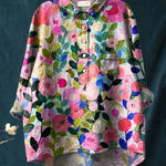 Isabelle | Вибрираща флорална риза представя палитра от живи, ръчно рисувани цветя в наситени розови, сини и зелени нюанси. Този жизнен, цветен дизайн е идеалният начин да освежите всяка визия, придавайки свежо и ведро настроение на деня ви. Без значение дали се разхождате навън или сте на неангажираща среща с приятели, тази риза ще внесе естествена красота и лекота в стила ви.