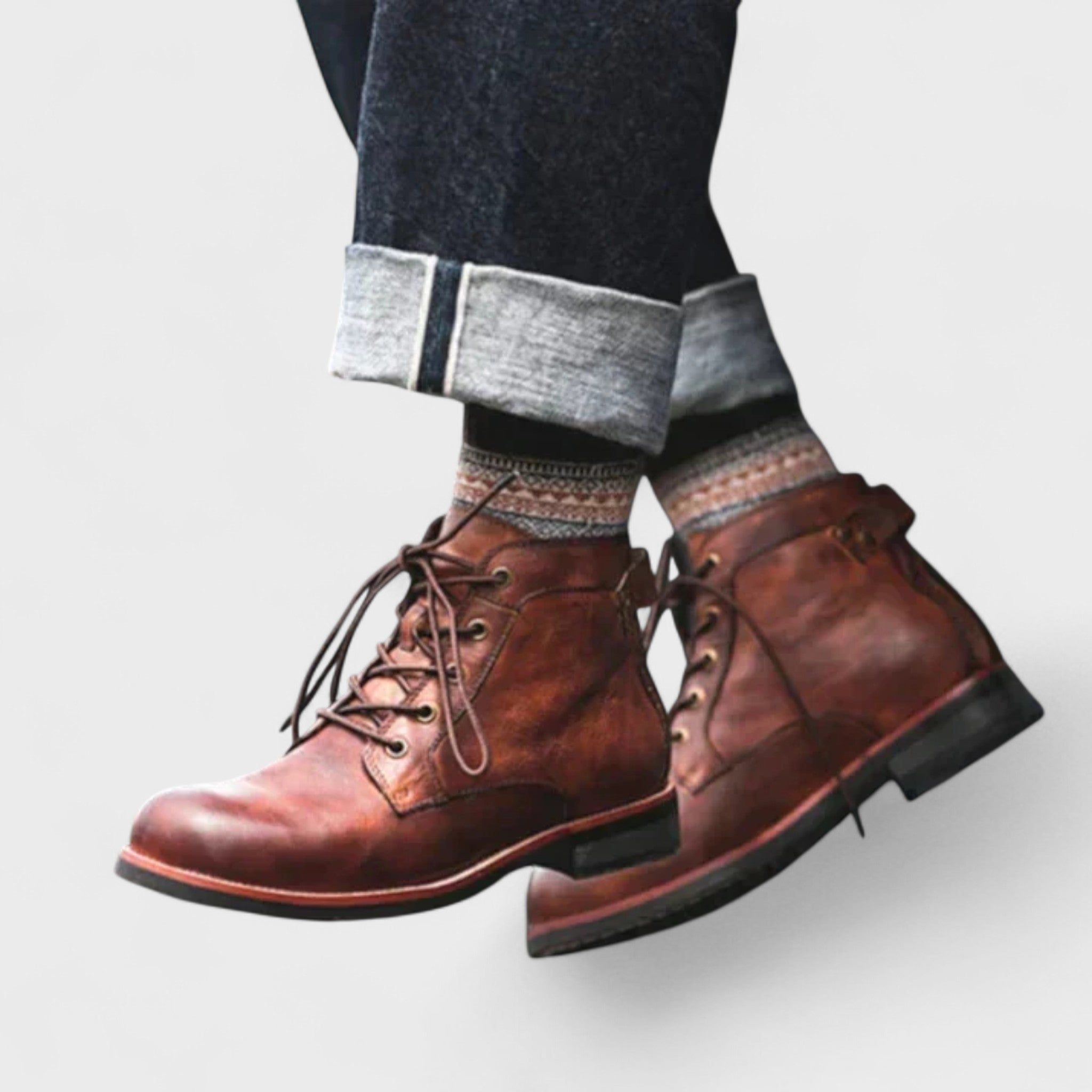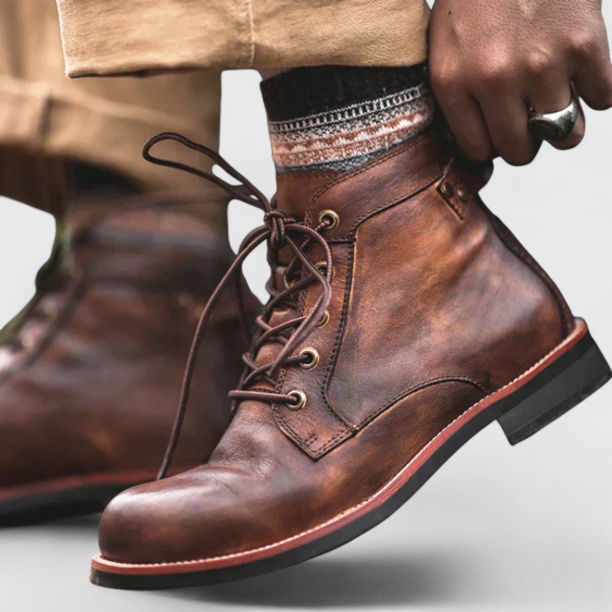 Мъжките високи обувки Kelvin са създадени за градски и приключенски преживявания на открито, комбинирайки здравина и елегантност. Снабдени с устойчива подметка и изработени от висококачествена естествена кожа, тези обувки осигуряват надеждна поддръжка и оптимален комфорт. Задължителен елемент за всеки гардероб, който съчетава функционалност и стил.