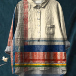 Lena | Риза с артистични райета е експлозия от цветове и шарки, създадена, за да добави модерен акцент към вашия гардероб. Съчетавайки смели хоризонтални и вертикални райета в червено, синьо и жълто, тази риза е перфектна за тези, които обичат уникалните, артистични дизайни. Свободната кройка и меката материя я правят както удобна, така и стилна.