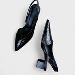 Тези обувки съчетават финес и удобство в перфектен баланс. Отвореният заден дизайн придава елегантност и лекота, а стабилният ток осигурява комфорт при всяка стъпка. Подходящи както за офиса, така и за специални поводи или вечерни излизания.