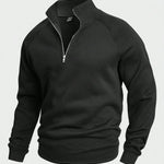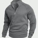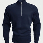Дарио пуловерът с полов цип предлага изчистена визия и практични характеристики. Отварянето с полов цип позволява да регулирате височината на яката за удобство и бърз контрол на температурата. Смесената плетена материя е дишаща и позволява лека еластичност за по-лесно движение. Конструкцията запазва формата на пуловера стегната и подредена по време на носене.