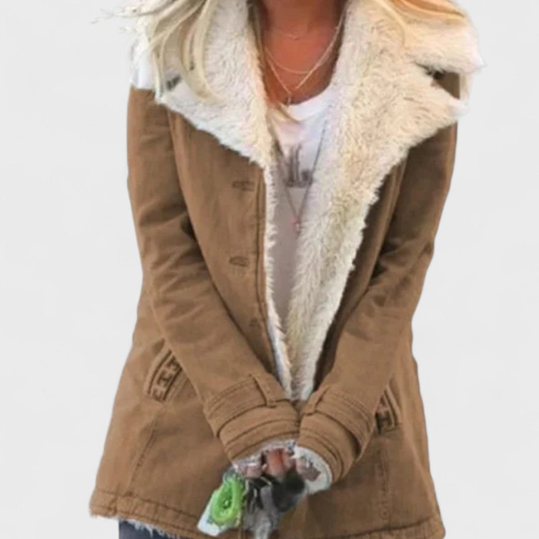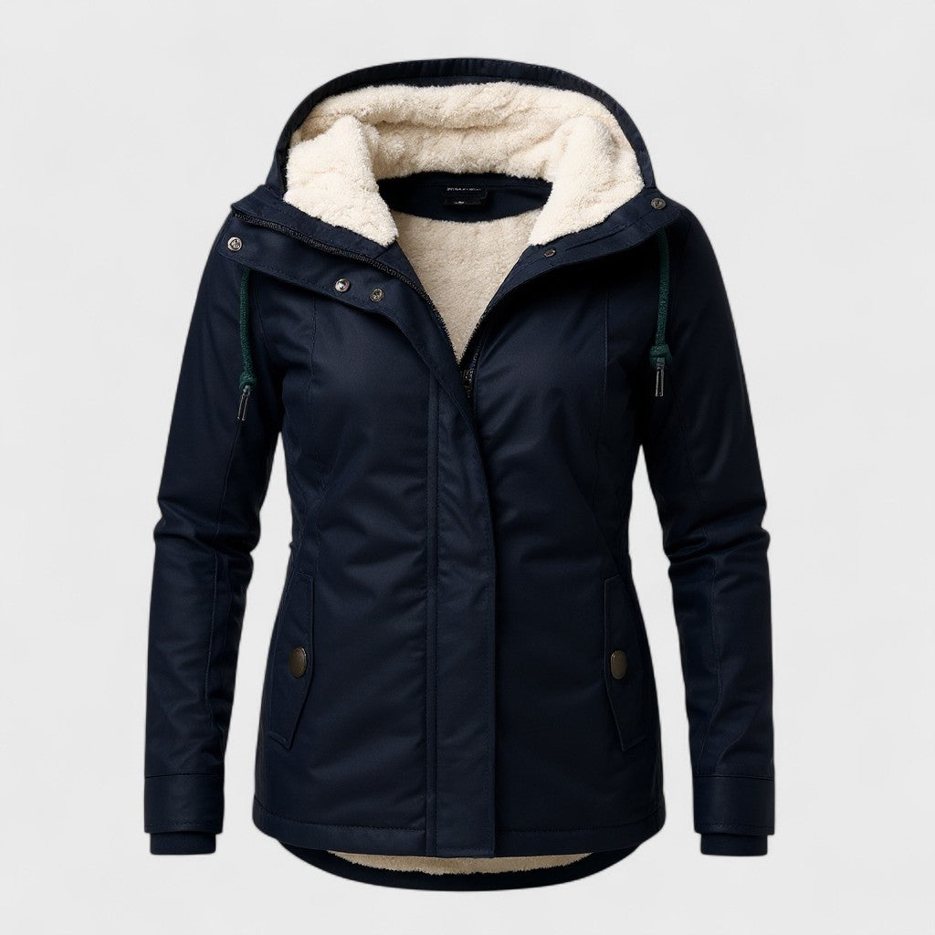 Мария - Стилен пухкав зимен яке с качулка и златен цип
