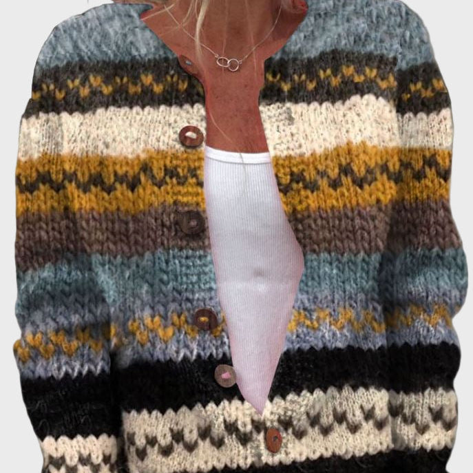 Ксения - Пуловер с дълги ръкави и кръгло деколте на райета