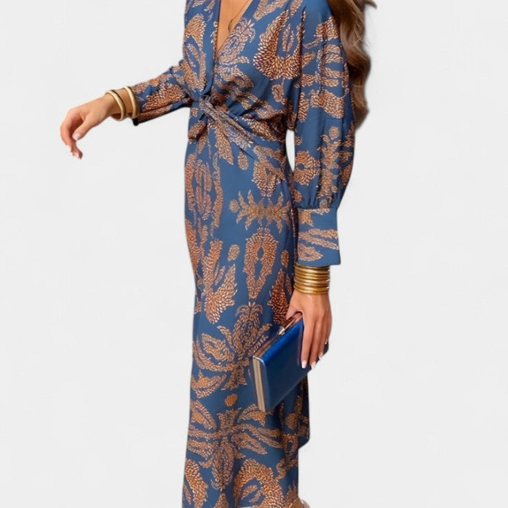 Елена Рокля с Дълги Ръкави и Дълбоко V Деколте