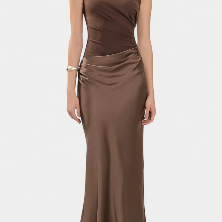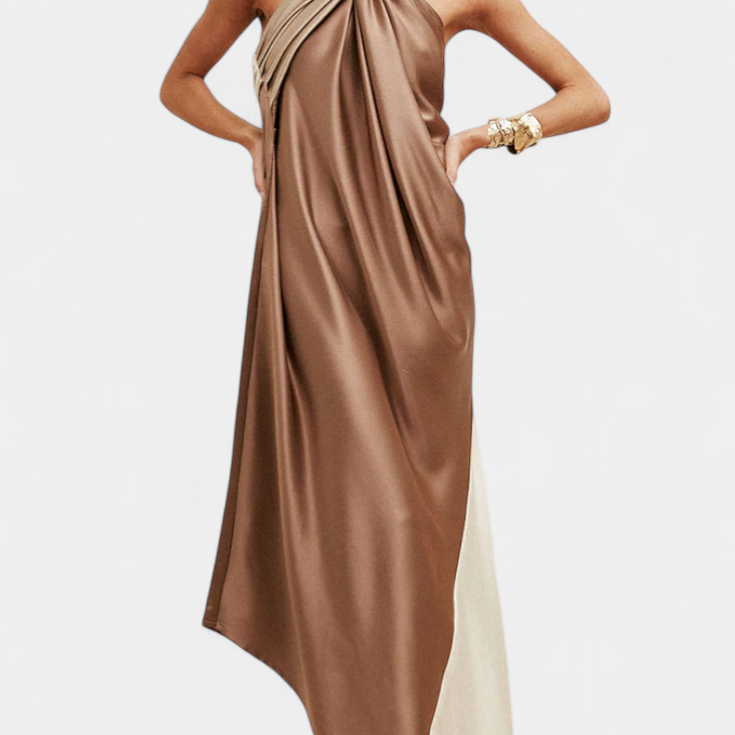 Драгица Асиметрична Дълга Рокля в Бронзов Цвят